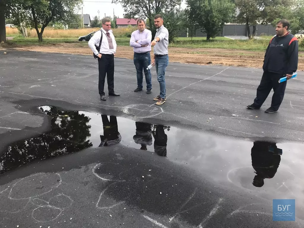На місці одразу виявили бракоробство. Асфальт на обох майбутніх спортивних майданчиках покладений нерівно.