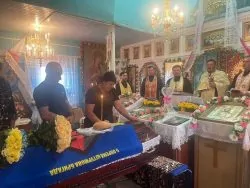 Біля монастиря з самого ранку почали збиратись віряни. Вхід до храму люди вистелили квітами.