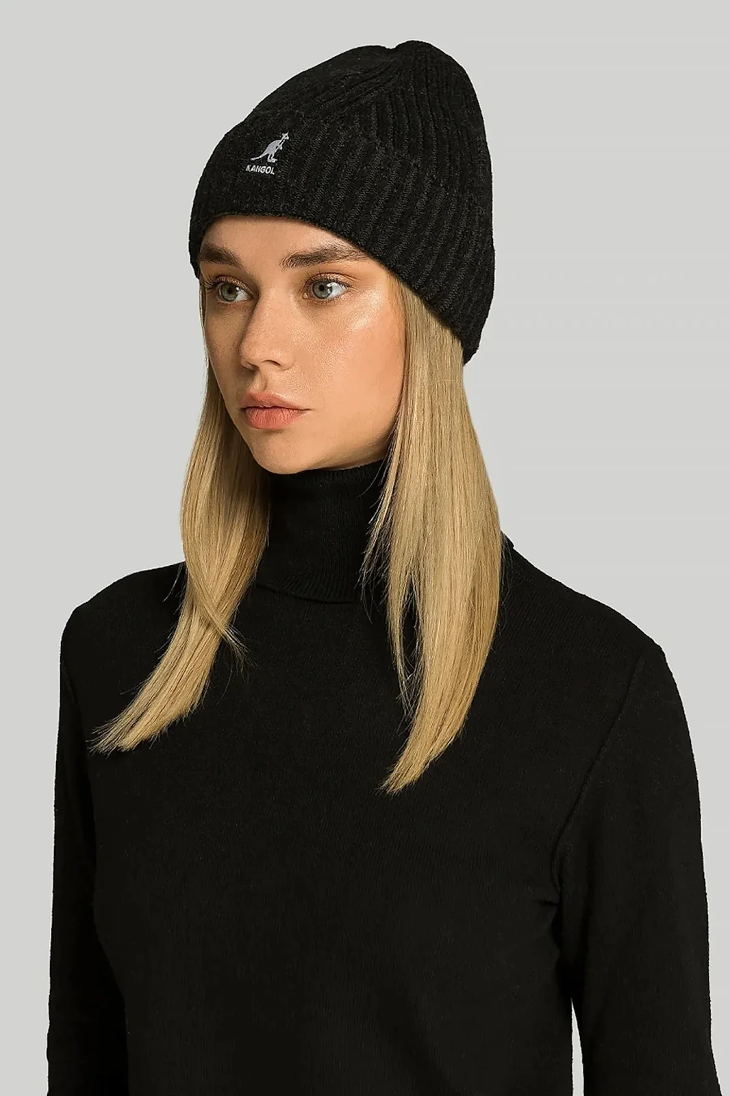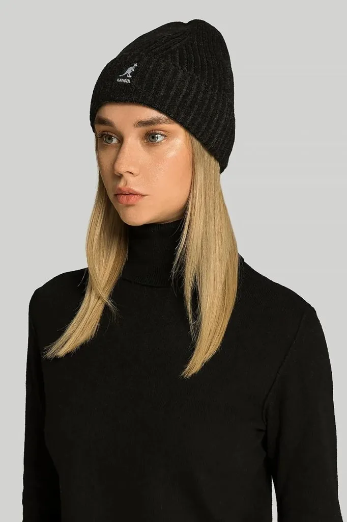 До короткого об’ємного пуховика ідеально підходить Kangol Merino Wool Rib Beanie – тонке вовняне біні, яке повторює контур голови, забезпечує комфорт і зберігає компактність образу. Разом вони формують дует, який виглядає сучасно, мінімалістично та дуже продумано, підкреслюючи тренд на структуровану класику без зайвого об’єму.
