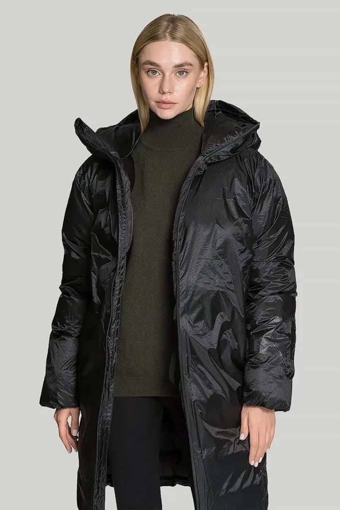 Подовжений пуховик Rains Kevo Long Puffer із водовідштовхувальним шаром надійно захищає від холоду, снігу та вітру, а прямий силует робить образ акуратним, сучасним і універсальним для різних ситуацій – від міських прогулянок до подорожей. Шапка Arctic Toque GD-1 із щільного матеріалу та високим відворотом не тільки утримує тепло, але й додає візуальної цілісності образу.