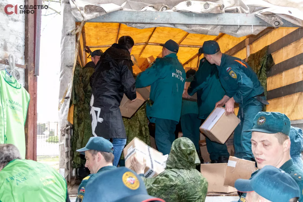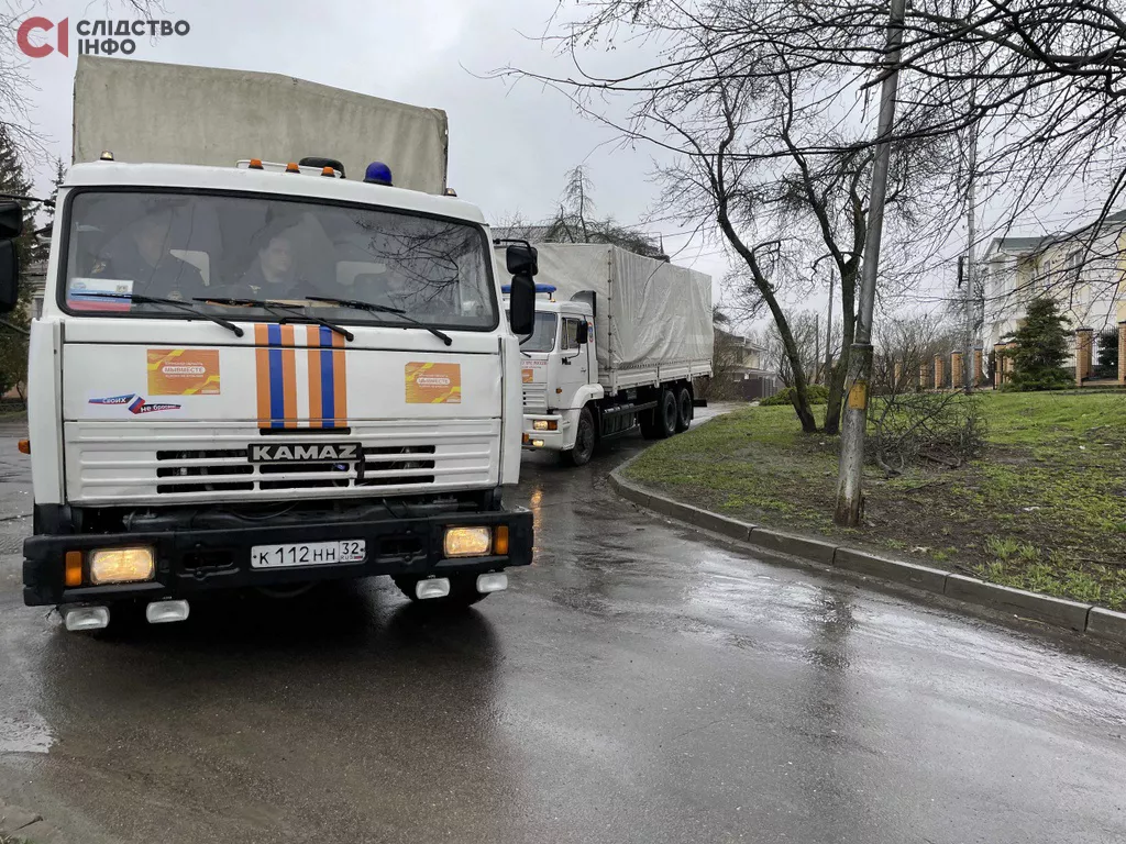 На камазах з літерою Z та надписом «Своих не бросаем» співробітники МНС везли церковні пакунки.