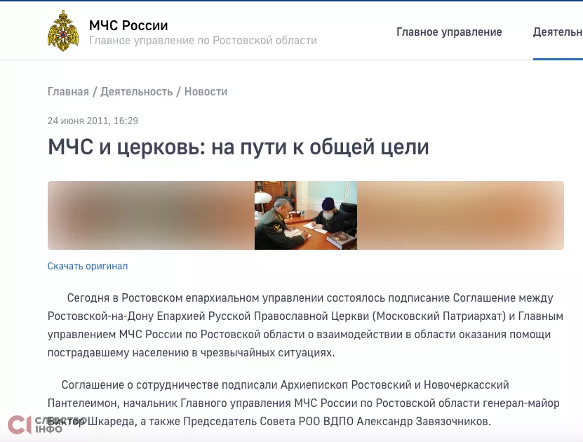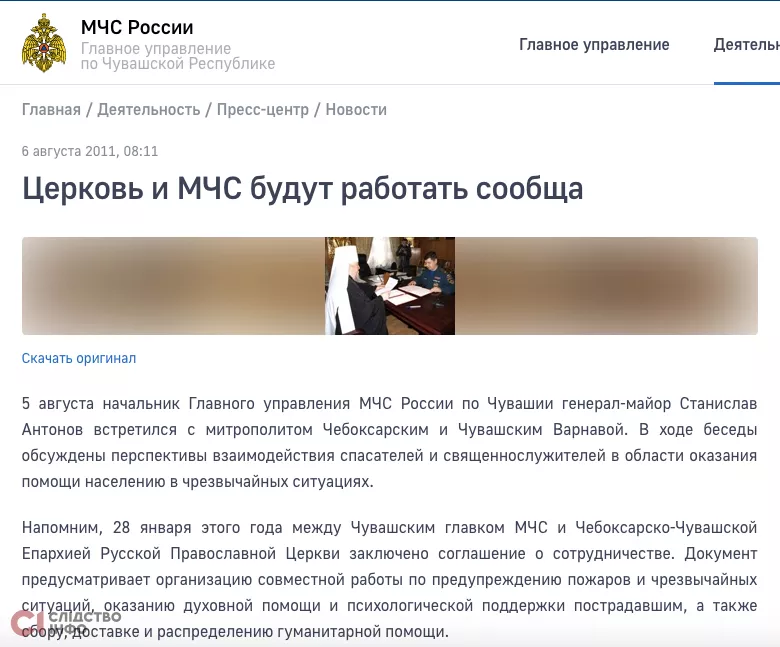 «Слідство.Інфо» дослідило традицію співпраці церковників та силовиків. Виявилося, що вона триває з 2010 року — тоді у кількох російських областях відбулися урочисті підписання угод про співпрацю між церквою та рятувальниками.