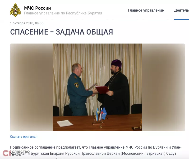 Наприклад, у 2010 році головне управління МНС росії з Бурятії та Бурятська Єпархія РПЦ домовились проводити спільну роботу з допомоги постраждалому населенню у надзвичайних ситуаціях. Як тоді зазначили на сайті МНС росії, це допоможе «взаємному обміну інформацією, взаємному навчанню та співпраці».