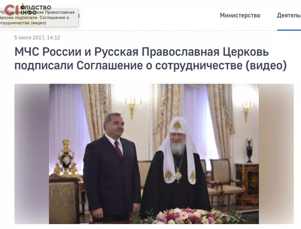 У 2017 році ці стосунки легалізували остаточно: Голова МНС росії Владімір Пучков та московський патріарх Кирило підписали Угоду про співпрацю між МНС росії та Російською православною церквою.