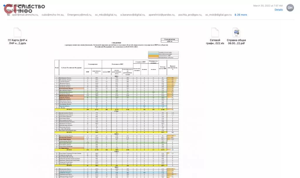 Від самого початку повномасштабного вторгнення росії в Україну, з 24-го лютого, Міністерство надзвичайних ситуацій росії надсилає звіти щодо окупованих територій та депортованих українців на електронну пошту Синодального відділу з благодійності Російської православної церкви (РПЦ). МНС щоденно інформує церковників про зміни на окупованих територіях та, що ще цікавіше, про кількість примусово вивезених українців — маршрути та час доставки людей з України в росію.
