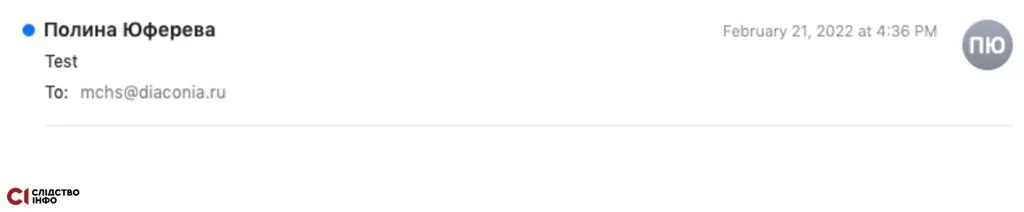 Пошта, з якої велося листування, називається [email protected] — схоже, її створили спеціально для контактів між російськими церковниками та силовиками у питаннях війни в Україні. Перший тестовий лист на цю пошту надійшов 21-го лютого 2022 року, перед самим вторгненням рф в Україну