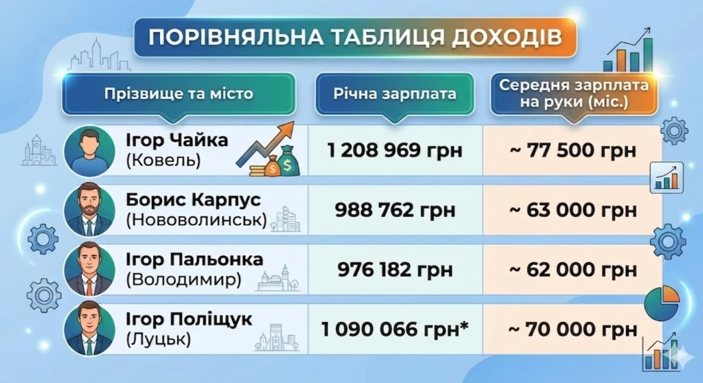 [ОНОВЛЕНО] Хто з мерів Волині заробив найбільше у 2025-му: аналіз декларацій очільників найбільших міст області