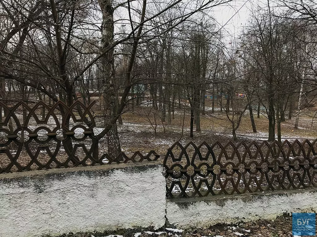 Парк обгороджений чавунним парканом. Підозрюю, що його потроху розбирають та несуть на скупку металу. Як із огорожою 1-ї школи, якось писала про це новину.