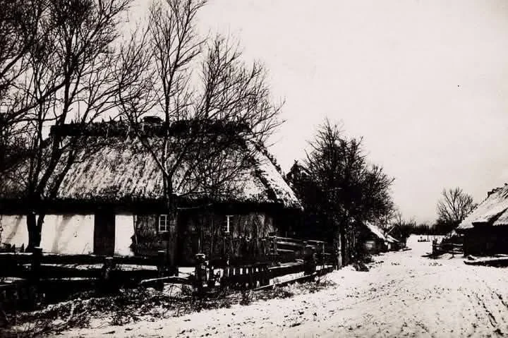 На світлині — село П’ятидні на Волині у 1918 році. Засніжена сільська дорога, хати під солом’яними стріхами та дерев’яні паркани передають типовий вигляд волинського села початку ХХ століття.