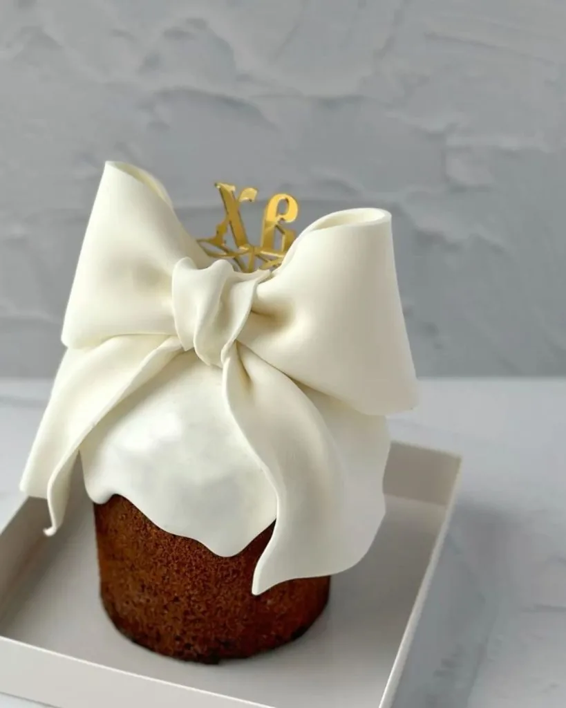 Один об’ємний бант із мастики чи шоколадної маси став справжнім трендом. Він може бути розташований по центру або збоку паски й виконує роль головного декоративного елемента. Простота композиції при цьому виглядає дуже ефектно та сучасно.