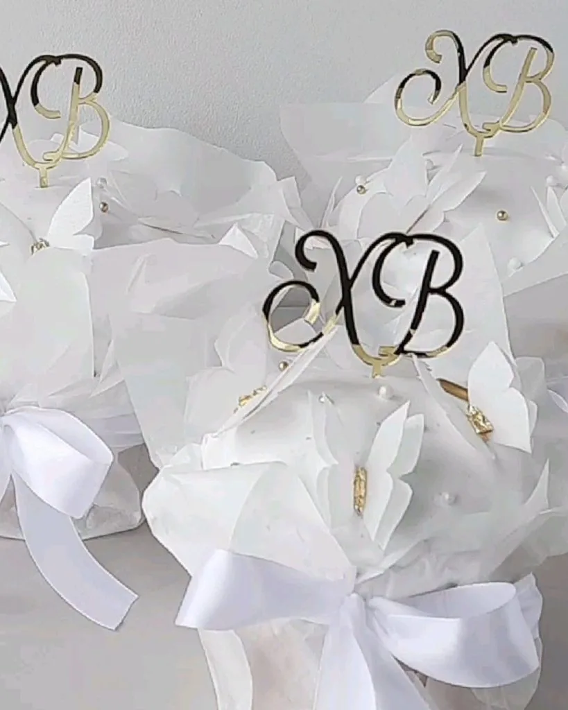 Легкі напівпрозорі квіти та метелики виглядають дуже ніжно й витончено. Найчастіше використовують білий або пастельні відтінки — такий декор додає святковості без перевантаження.