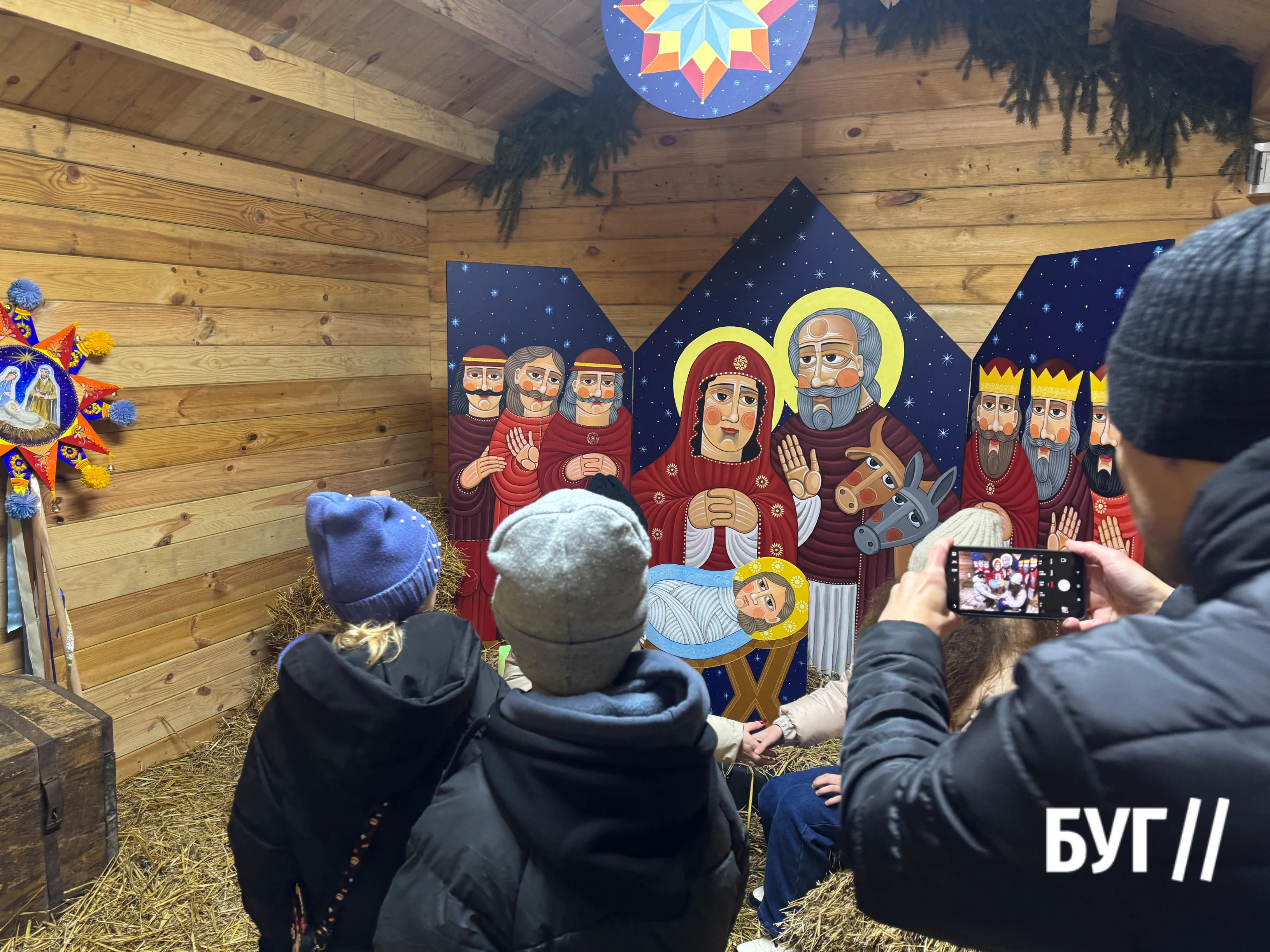 Вертеп став окремим елементом різдвяної локації. Його художнє оформлення виконала нововолинська мисткиня Алла Навроцька.