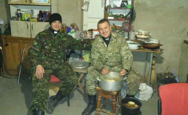 Із посмішкою, якось по-дитячому просто капелан розповідає про побут солдат на фронті.