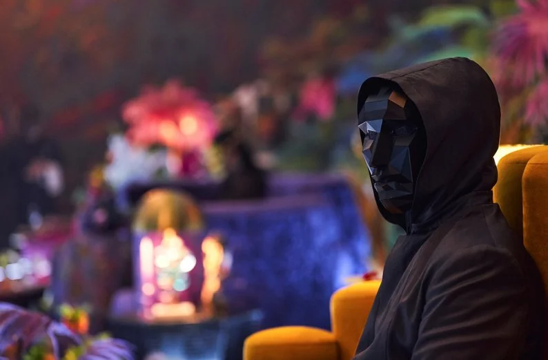 Безликі маски охоронців, прикрашені простими фігурами, додавали елемент таємничості та дегуманізації. Ця різка візуальна відмінність між гравцями та охоронцями підкреслювала динаміку влади. А золоті маски, які носили VIP-и, ще більше підкреслювали класові розбіжності, що лежать в основі теми серіалу.