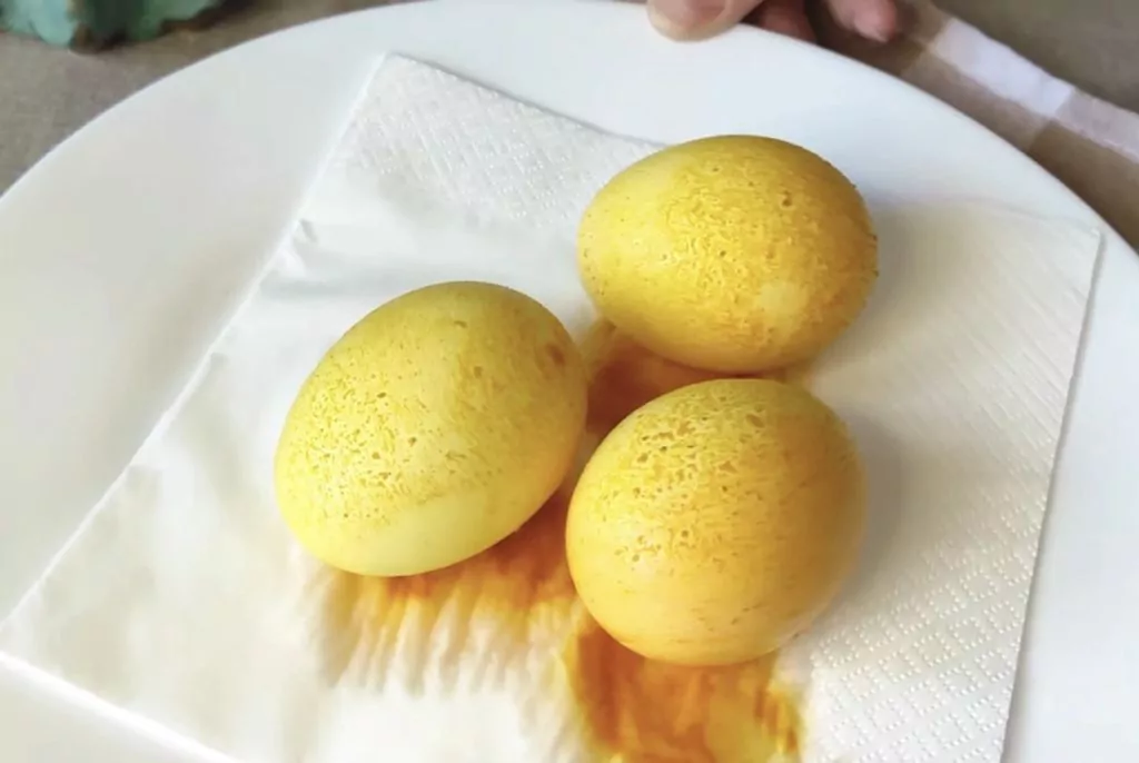 Викладіть яйця жовтого кольору на серветку і дайте їм висохнути.