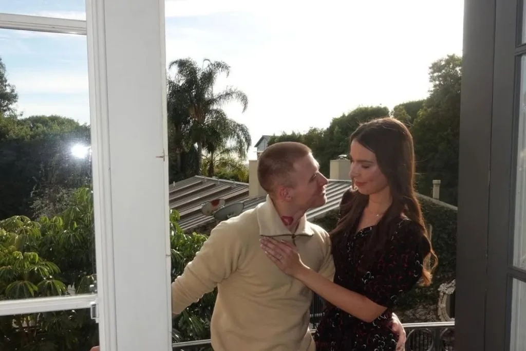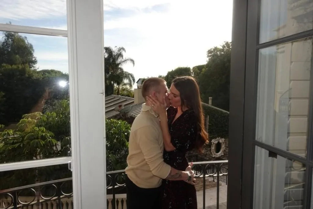 На опублікованих світлинах Анна Євтушенко та Роан Джозеф Бронштейн не приховують своїх почуттів: вони цілуються та обіймаються. На безіменному пальці дівчини видніється каблучка.