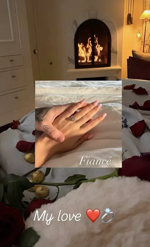 Роан показав фото каблучки з великим діамантом, яку подарував коханій, у своєму інстаграмі. На фото також можна помітити ліжко, на якому розкидані пелюстки червоних троянд і цукерки.