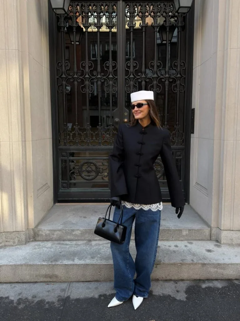 Жакети з широкими плечима та акцентними рукавами, які стилісти називають “наполеонівськими”, повертаються у моду з новою силою. Вони додають образу структури та впевненості, поєднуються як із спідницями, так і зі штанами.