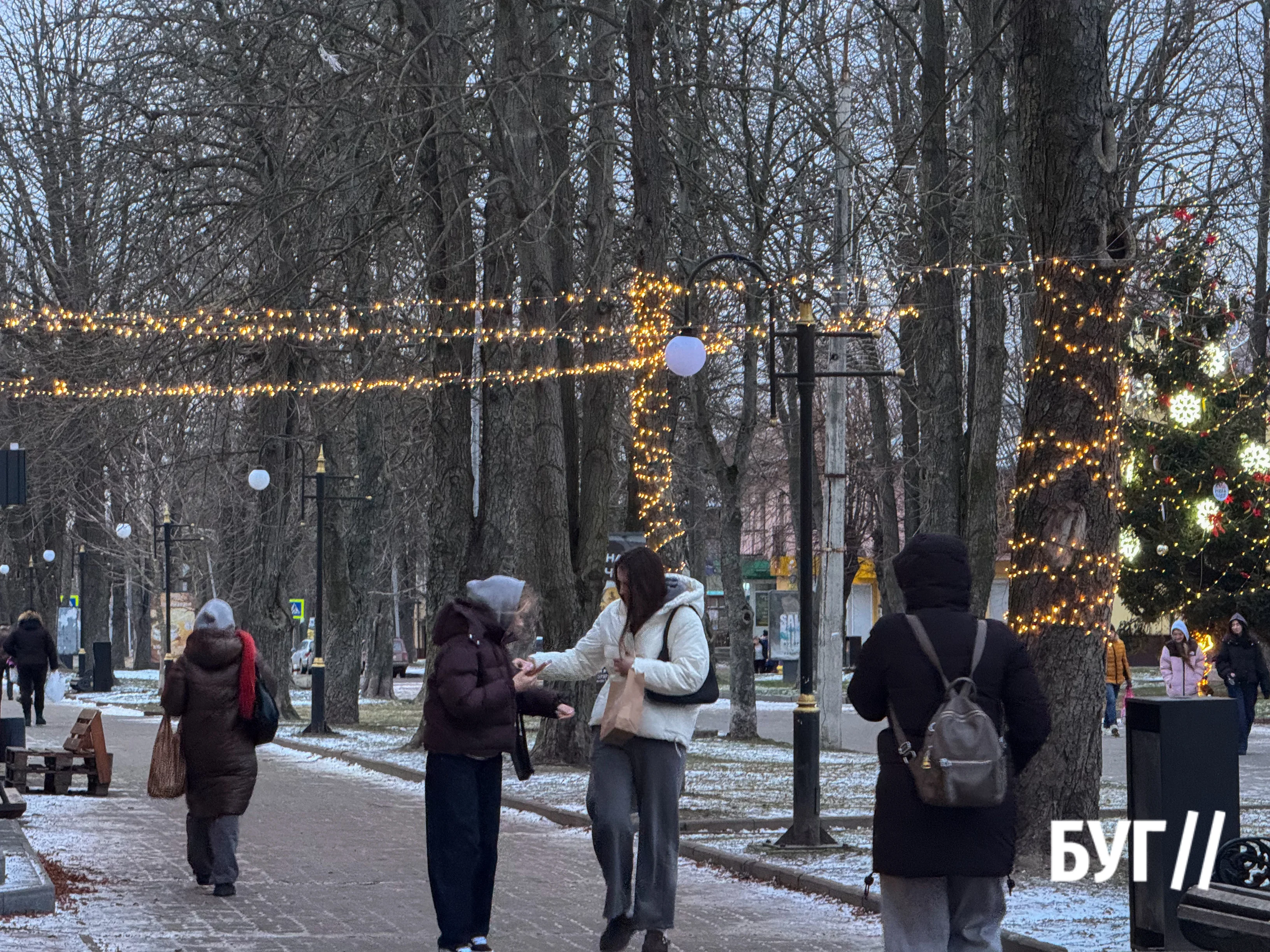 До Нового року в Нововолинську з’явився передсвятковий настрій — навіть попри те, що снігу залишилось небагато. На вулицях і у дворах — рештки снігу, подекуди болото й волога бруківка, які нагадують про мінливу зимову погоду. Місто виглядає по-іншому, але атмосфера очікування свята від цього не зникає.
