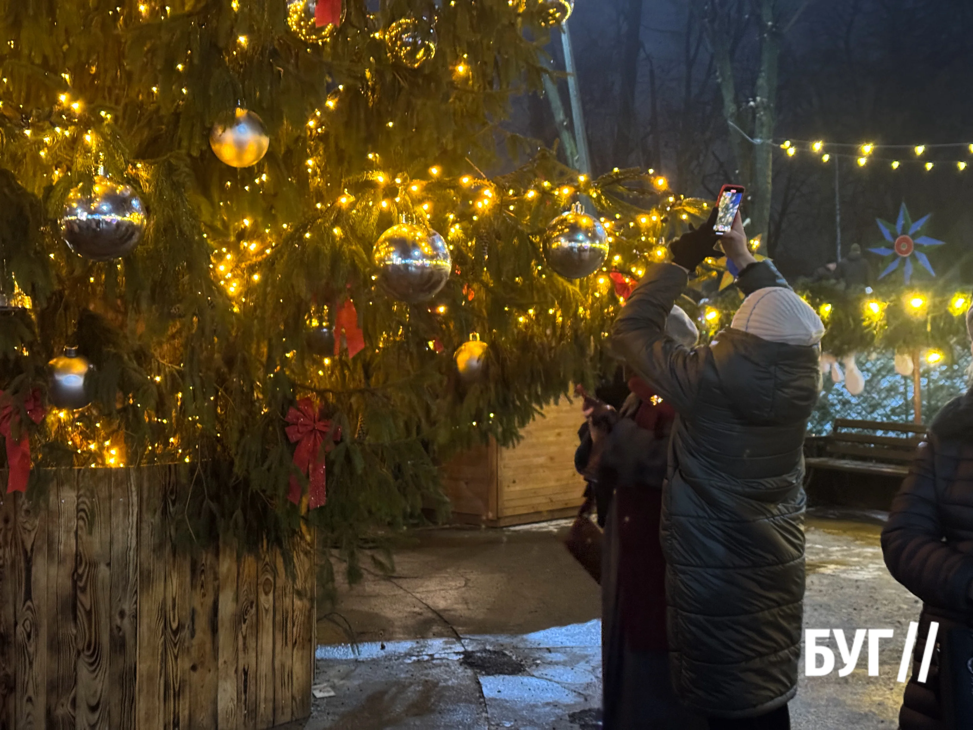 Увечері Нововолинськ стає спокійнішим. Ліхтарі освітлюють вологі тротуари й дороги, люди повертаються додому, завершуючи останні справи перед святами. Місто повільно входить у новорічні дні з тихим відчуттям очікування.