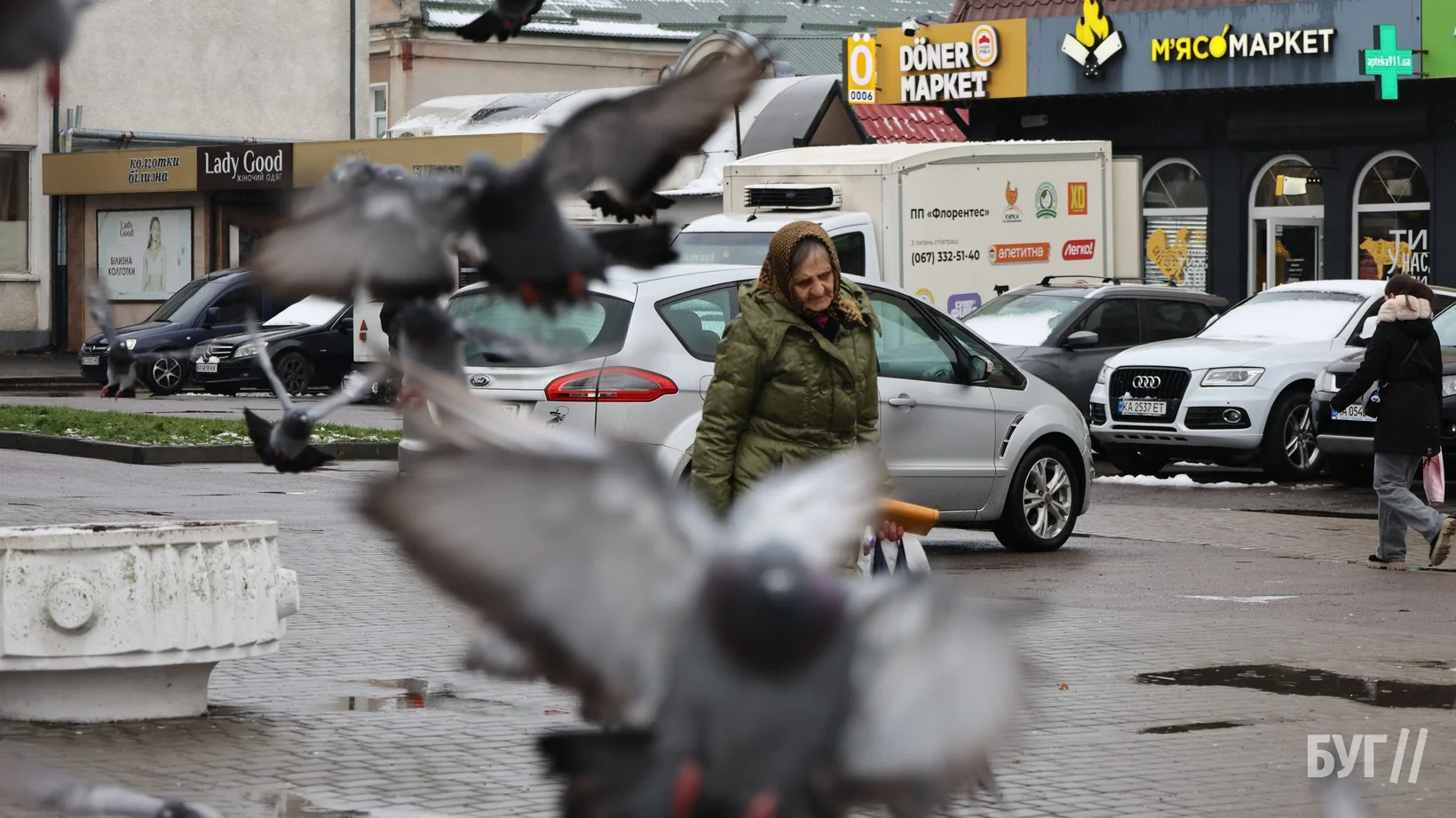 У Володимирі 25-го листопада погода змінилася — після вчорашнього морозцю та снігу місто накрили дощ, холод і суцільна сирість. Попри це, містяни продовжують звичний ритм: працюють, ходять на ринок, спілкуються, а поруч із ними мокнуть безпритульні тварини та ховаються під дахами голуби.