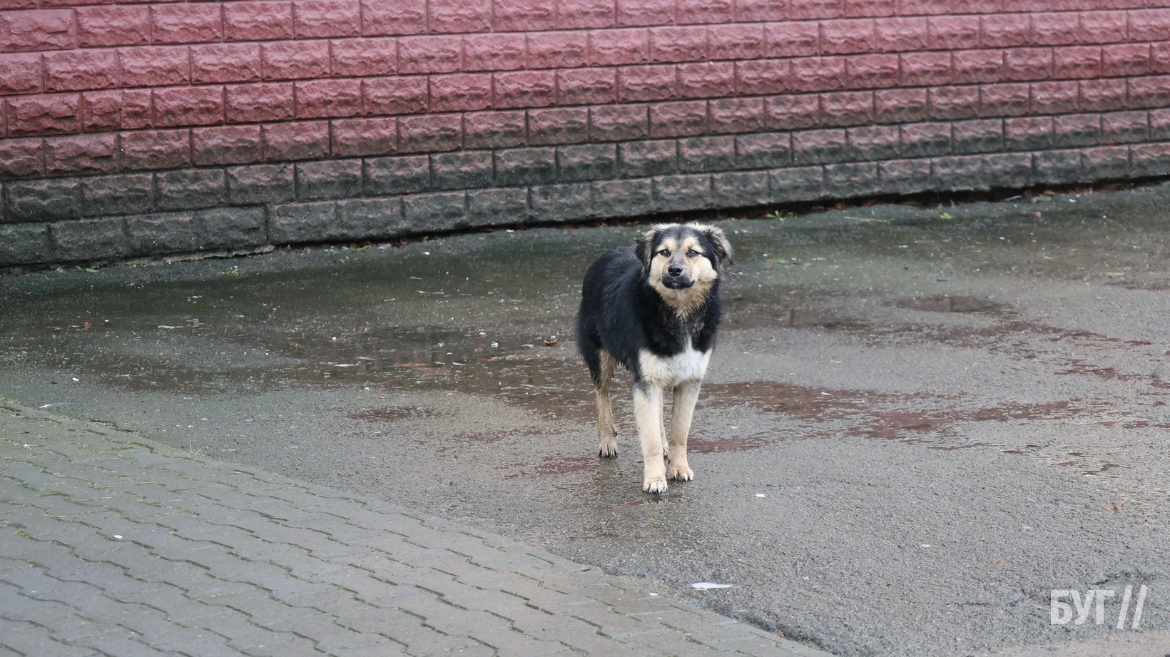 У місті також помітні безпритульні тварини, які мокнуть під дощем біля торгових точок та під’їздів.