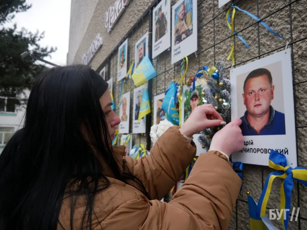 Поруч із цим буденним міським рухом — тиша біля стели з портретами зниклих безвісти та полонених. Тут рідні й близькі приходять до світлин, чіпляють гілки ялинок, різдвяні іграшки, залишаючи знаки пам’яті й надії. У передсвяткові дні це місце стає особливо промовистим — нагадує про тих, кого на Різдво ще чекають.