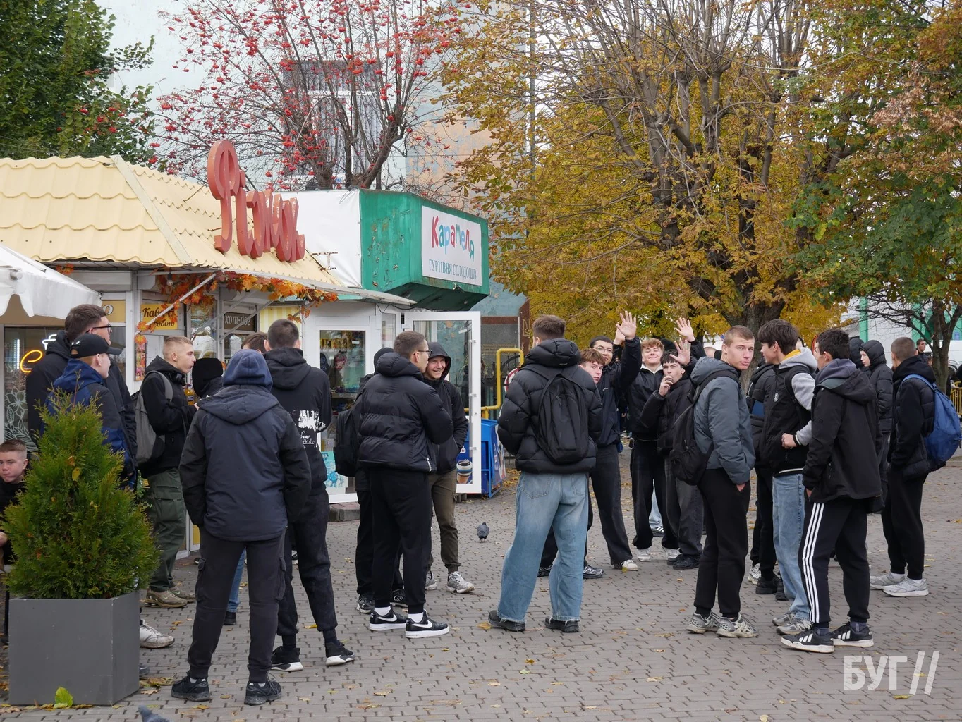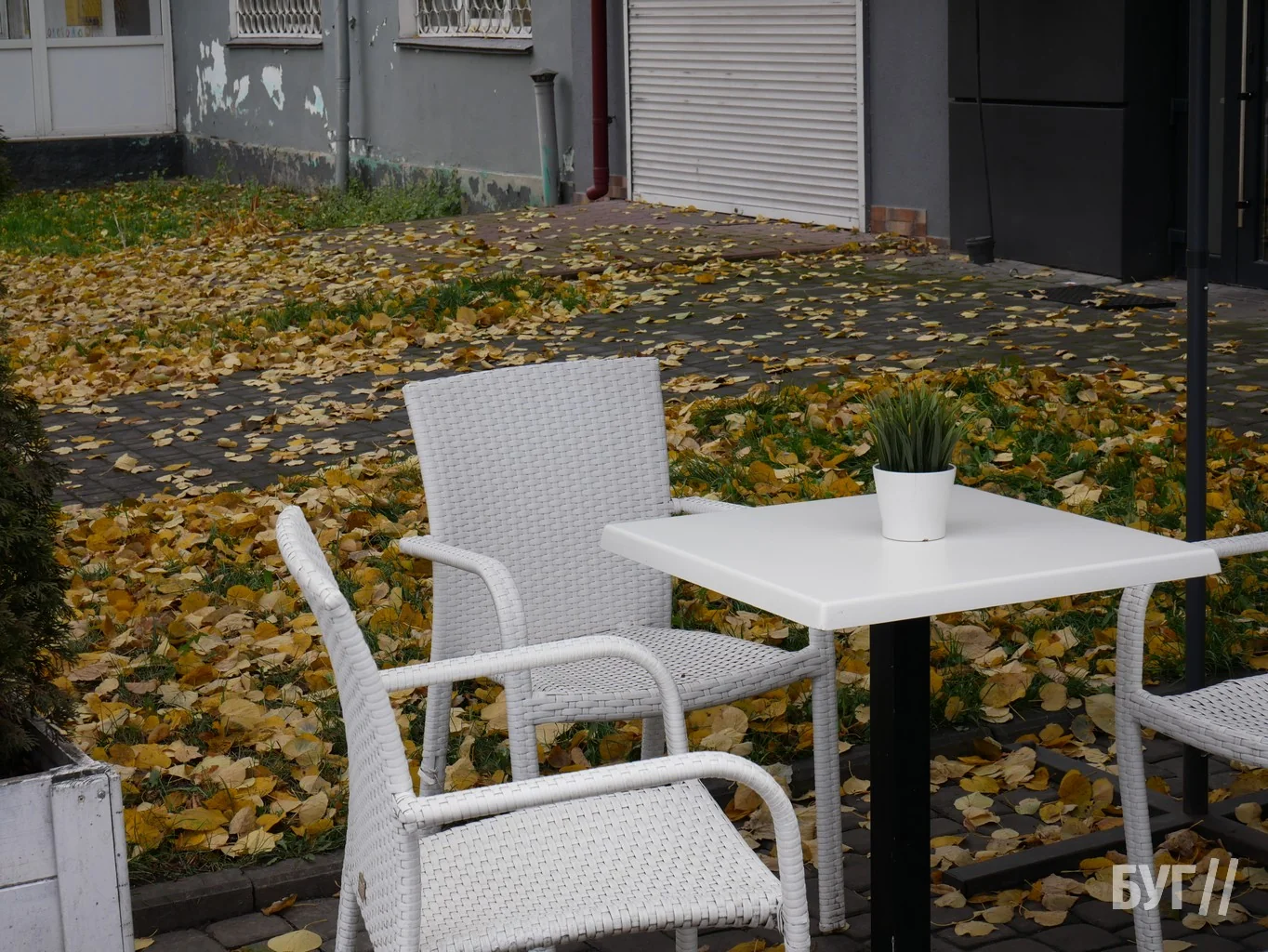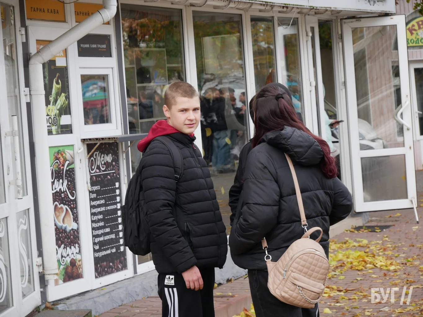Шкільні канікули зменшили кількість дітей на вулицях. Натомість більше студентів — вони проводять перерви біля кав’ярень, чекають у чергах по щось тепле. Літні тераси працюють, але столики порожні — через погоду охочих сидіти на вулиці майже немає, каву беруть з собою.