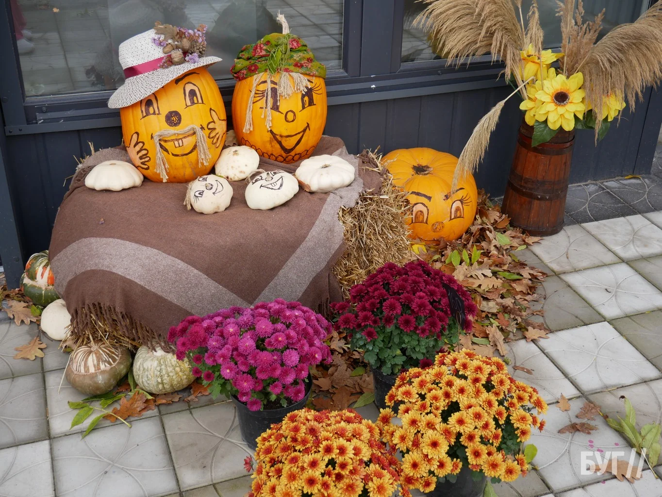 На центральних вулицях і ринку — сезонна торгівля: продають мандарини і саджанці дерев, шаткують капусту. Осінь відчутна й у вітринах: всюди гарбузи та хризантеми.