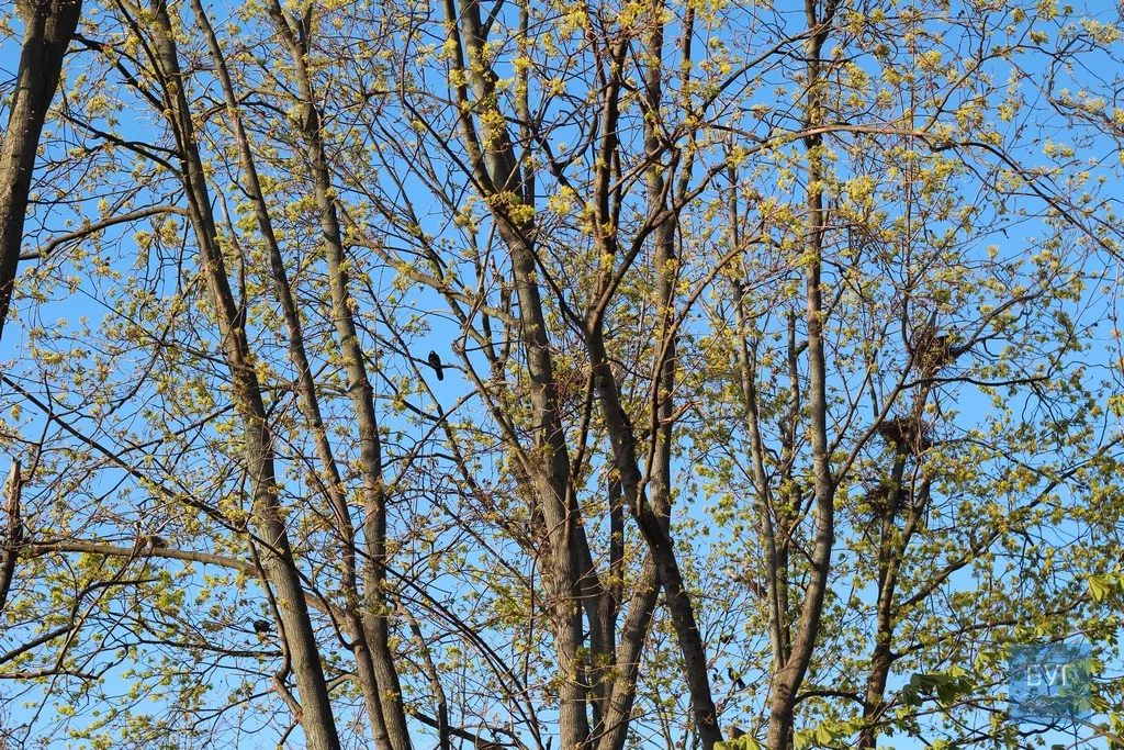 Людей в парку майже немає, однак постійні його жителі – ворони, на місці.
