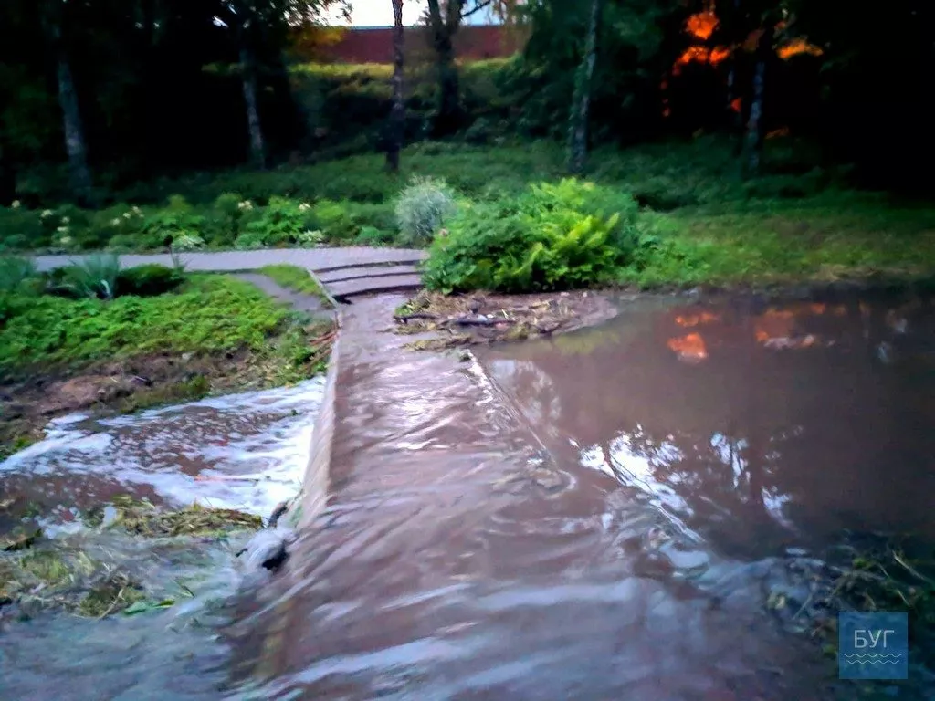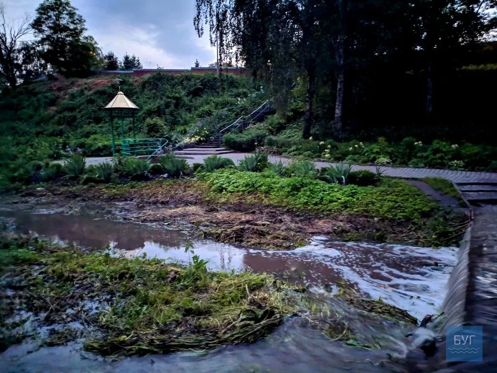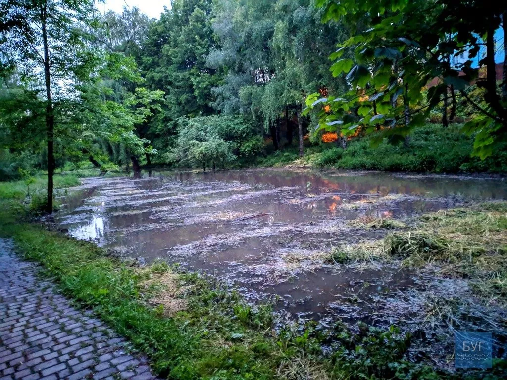 Однак, після грози, рівень води піднявся, а місцями і вийшов за береги. Брудно-сірі води річки затопили частину парку “Слов’янський”.