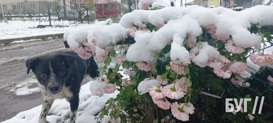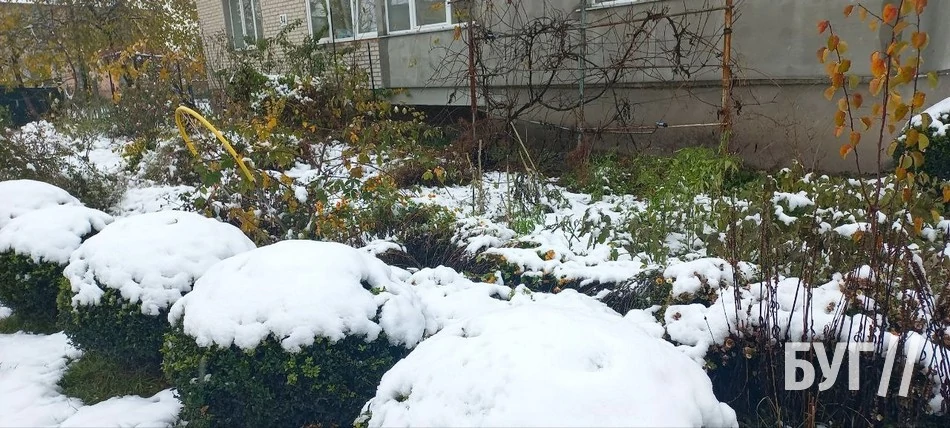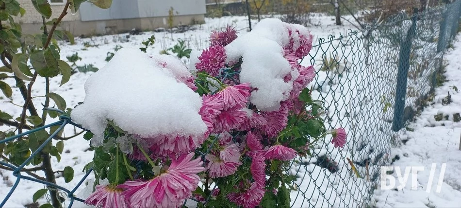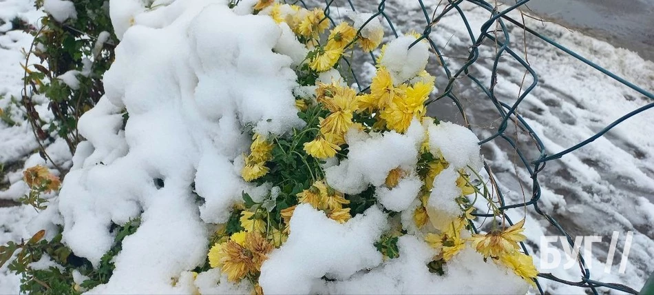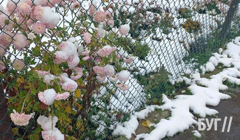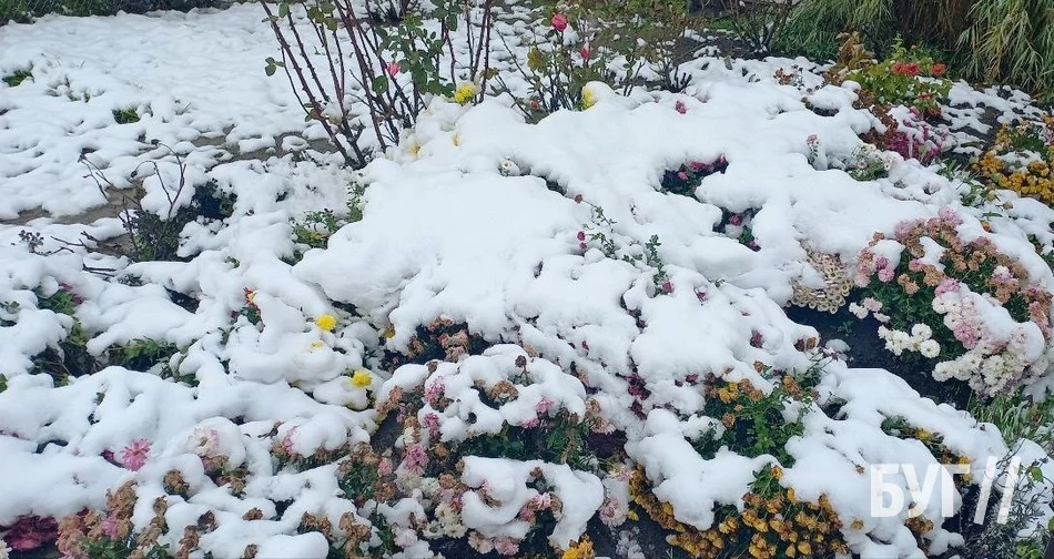 Покриті мереживною пелериною трава, квіти, хвойні дерева і дахи будинків виглядали казково. Хоча сніг на яскраво-кольорових квітах, жовтих, а подекуди навіть ще досі зелених листках дерев виглядав трішки дивнувато. Такий собі дисонанс в природі.