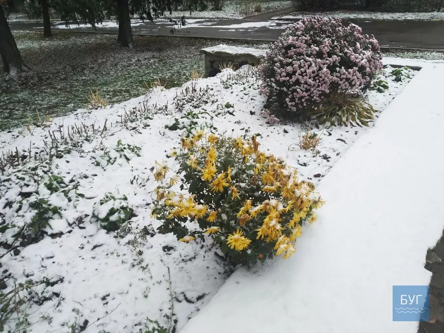 Хоча сніг падав недовго, а на мокрій дорозі швидко танув, покриті мереживною пелериною трава, квіти, хвойні дерева і дахи будинків виглядали казково.