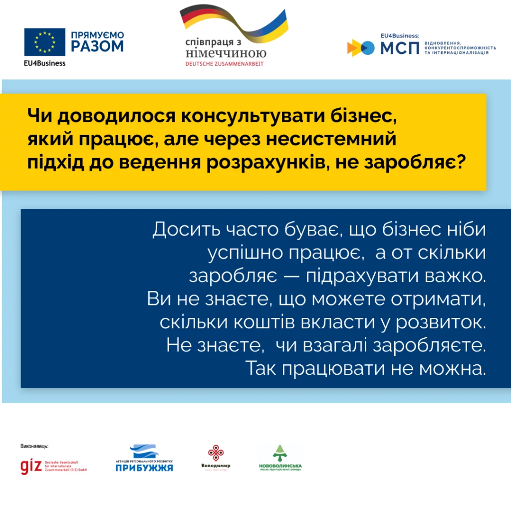 — Досить часто буває така історія, що бізнес ніби й успішно працює, а от скільки заробляє – підрахувати складно. До чого це може призвести? Ви не розумієте, скільки можете «дістати» з бізнесу та яку суму можете вкласти у розвиток. Та й, зрештою, не знаєте, чи взагалі заробляєте.