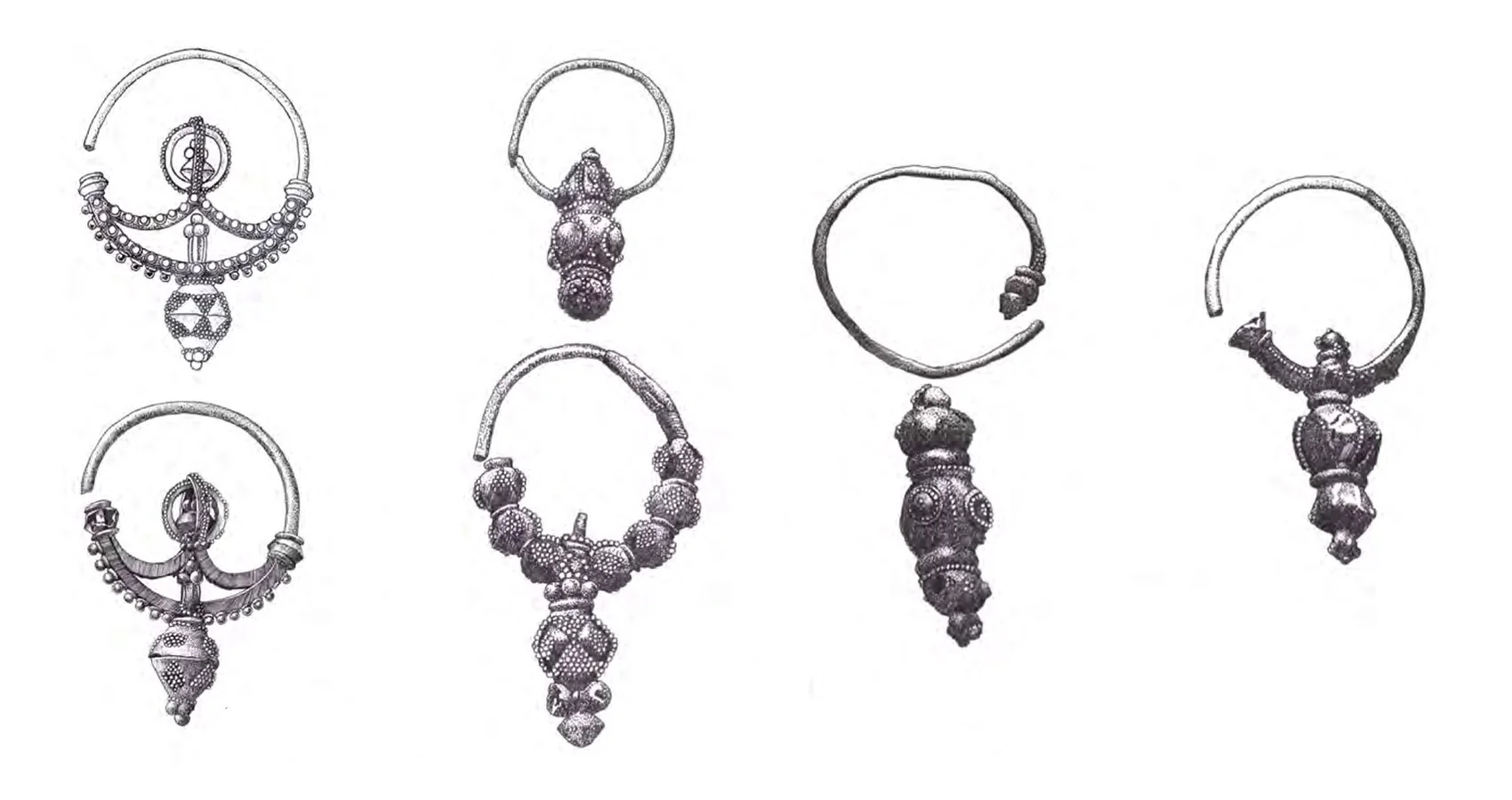 Друга група сережок виглядає простіше, проте також має декоративне оздоблення у вигляді орнаментів і скупчень кульок.