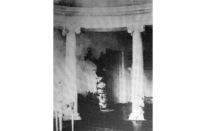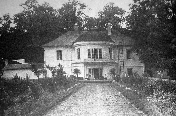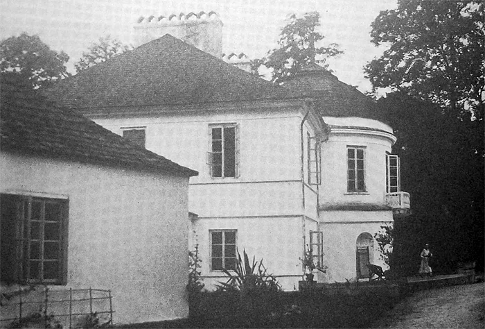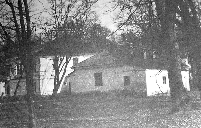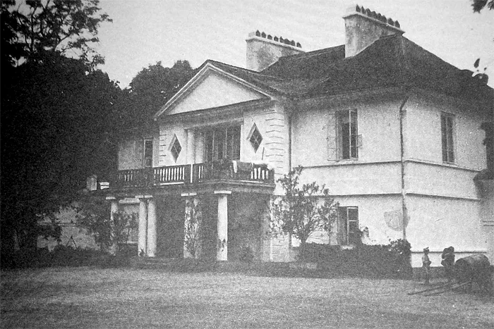 У 1806 році тут збудували класицистичний маєток, який складався з центрального корпусу та бічних павільйонів. Головна будівля була майже квадратною, з чотириколонним портиком, який пізніше розширили. На другому поверсі були вікна у вигляді ромбів. Всередині на першому поверсі була широка вітальня, зліва – дубові сходи, справа – камін, а прямо – вихід до столової зали в овальному еркері з колонами. Тут розташовувалися також кабінет власника та бібліотека.
