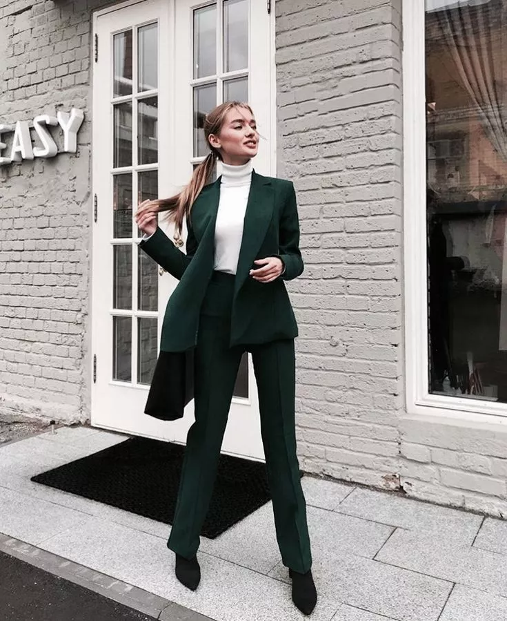 Ідеальним рішенням для корпоративної вечірки може стати строгий костюм. Класика ніколи не виходить з моди, а щоб ваш лук виглядав святково, досить додати трохи блискіток в макіяж і надіти масивні прикраси.