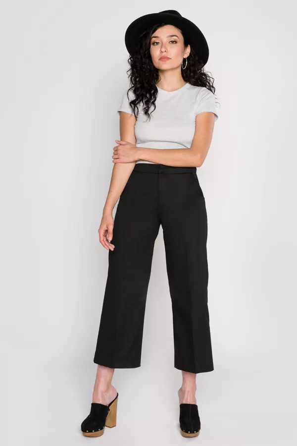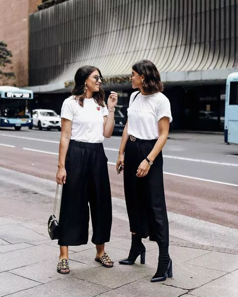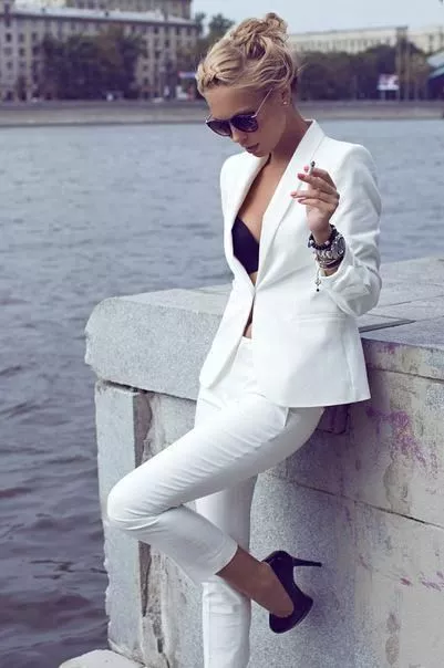 Тут може бути безліч варіацій: прямі класичні брюки можна надіти з контрастною сучасної футболкою, взуттям на грубій платформі і великими сережками.