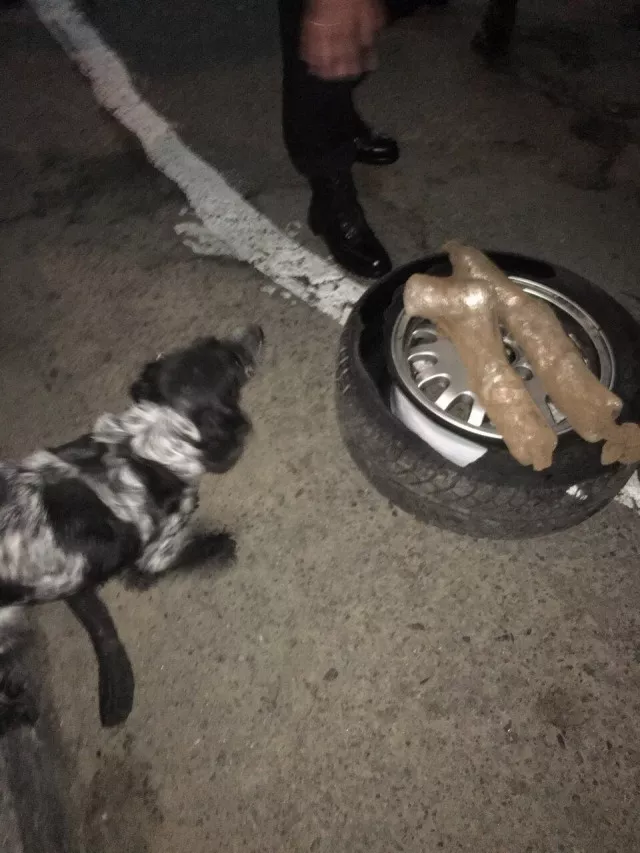 Перевіряючи автомобіль, працівники пункту пропуску в запасному колесі виявили 2 пакунки. У них знаходилася рослинна речовина, попередньо марихуана, вагою майже 700 грамів.