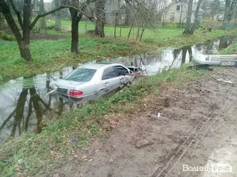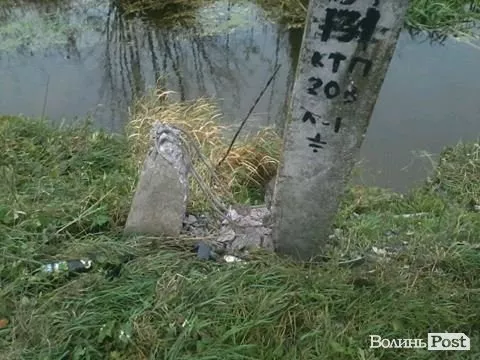 На Волині автомобіль збив стовп та злетів у канал з водою