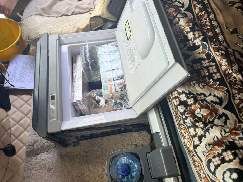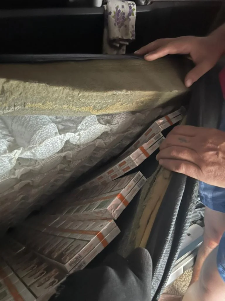 50 блоків цигарок марки «Compliment» без акцизних марок були сховані під спальним місцем водія, під матрацом, в автомобільному холодильнику та у спеціальних нішах транспортного засобу.