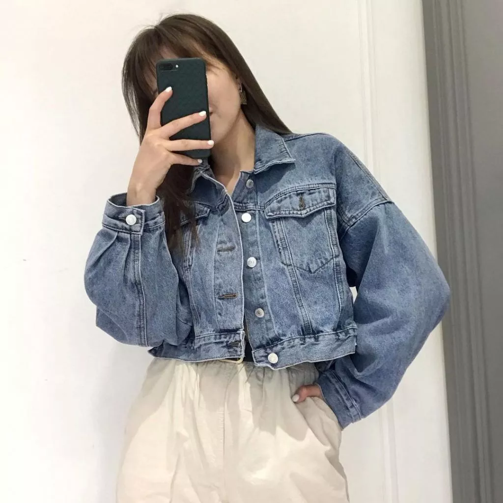 Для прохолодних вечорів можна приглянути синю джинсову куртку, або як її ще називають джинсівкою. Одягайте світлі штани або джинси з високою посадкою, топ контрастного кольору і завершіть образ укороченою джинсівкою.