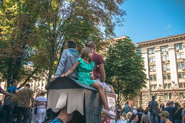 Охочих подивитися на видовищний захід було значно більше, ніж могли вмістити тротуари, тому киянам і гостям столиці довелося проявляти чудеса винахідливості в пошуку точок спостереження, повідомляє Информатор.