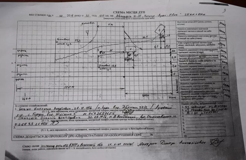 Проте, в судовому засіданні Олексій Панасюк розповів, що рухаючись, він пересік переривчасту лінію, що розділяла зустрічні смуги руху, та виїхав на зустрічну смугу для обгону вантажних автомобілів, де почалась суцільна лінія, що розділяє зустрічні смуги руху.