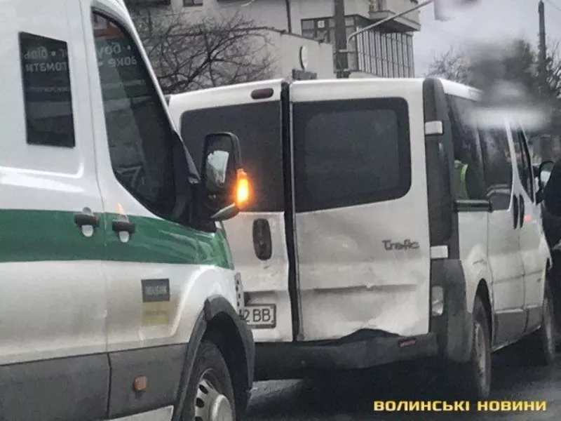 Інцидент трапився на світлофорі, що на вулиці Набережній поблизу повороту на вулицю Яровицю. Як повідомили очевидці, попереду рухався седан Mercedes, в якого в’їхав водій буса Renault. За ним рухалось авто інкасаторів, яке протаранило бус.