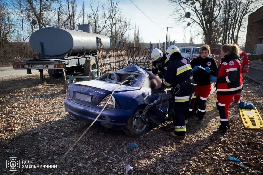 Як стало відомо виданню ВСН з власних джерел, аварія сталася 9-го березня. Автомобіль Mercedes-Benz на швидкості врізався у борону, яка стояла на узбіччі, та загорівся. Водій був заблокованим всередині горючого автомобіля. Його діставали за допомогою спецінструментів. 24-річна пасажирка загинула на місці. Про це повідомили у Головному управлінні ДСНС у Хмельницькій області.
