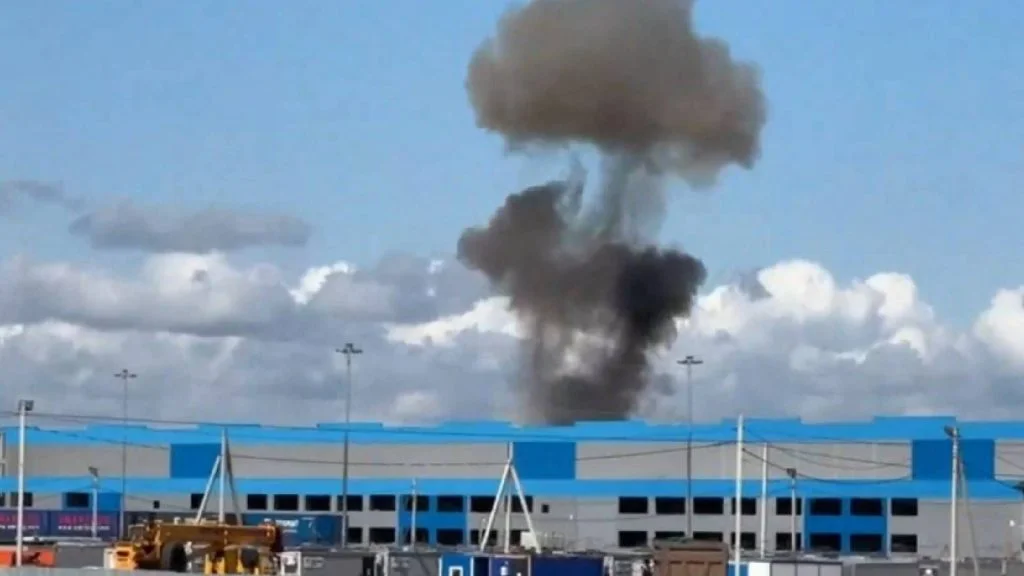 На відео видно, як безпілотник СБУ влучає прямісінько в будівлю логістичного хабу. Після вибуху розпочалася пожежа. Відстань від України до точки ураження – близько 1300 кілометрів.