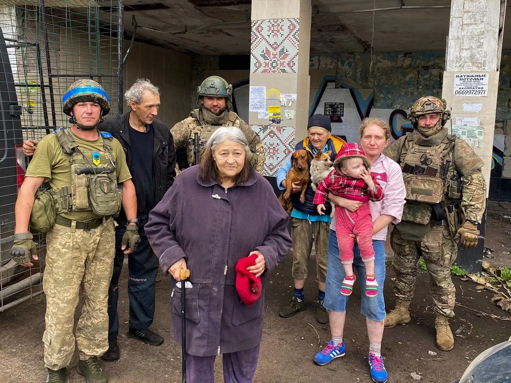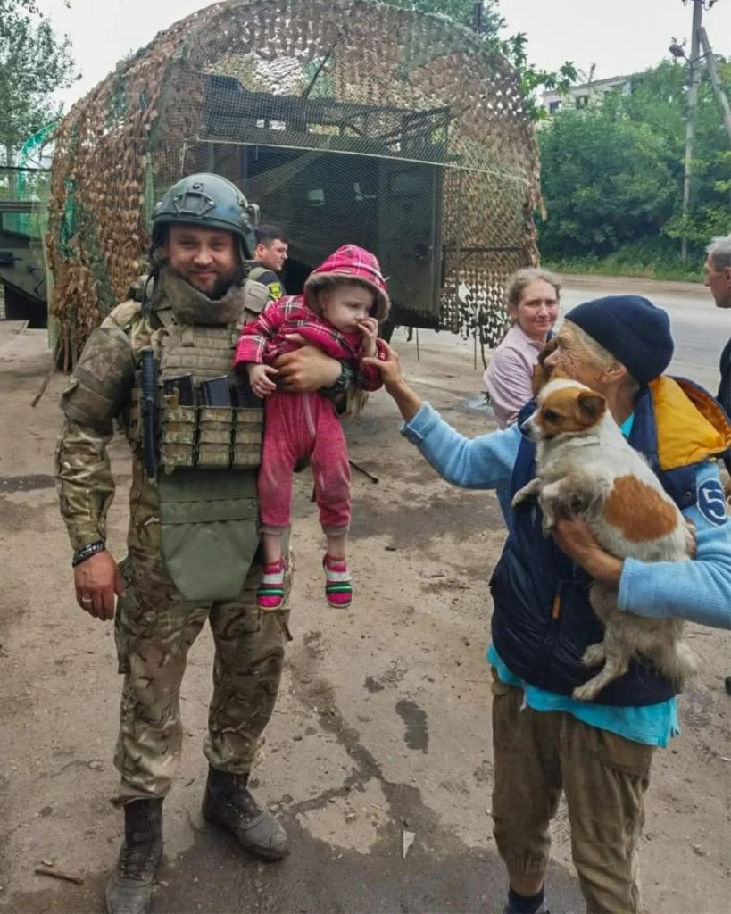 Бійці 2 механізованого батальйону вивезли на безпечну територію дворічну дівчинку Надійку, її маму, дідуся з бабусею та прабабусю. З собою люди взяли двох собак.