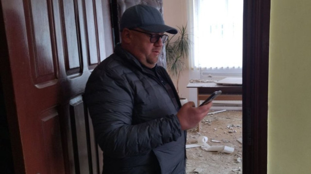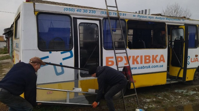 Водій маршрутки Віталій Яручик говорить, що транспорт, де вибило вікна та двері, нині відновлюють.