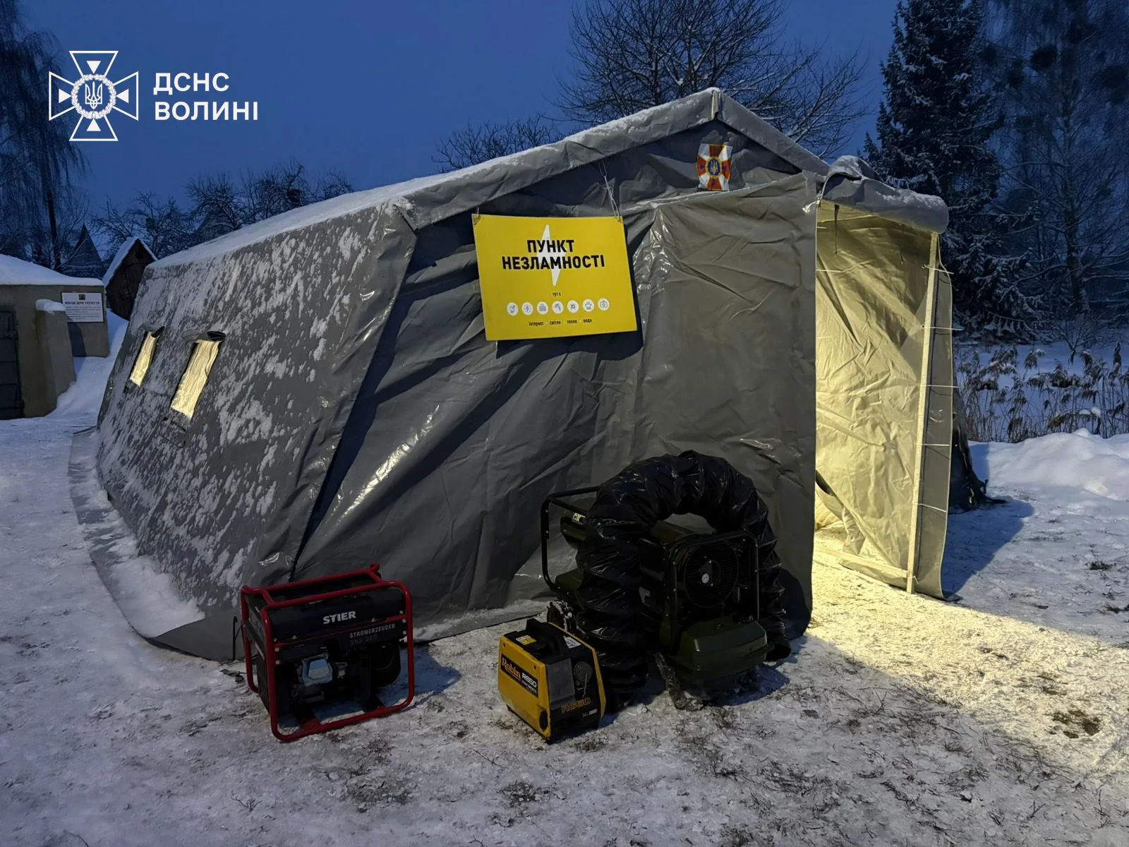 Мобільні Пункти незламності розгорнуто у містах Луцьку та Ковелі (по два намети у кожному місті); у містах Нововолинськ, Володимир та Камінь-Каширський — по одному, повідомляє ДСНС Волині.